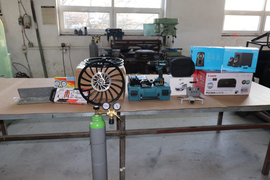 - Strojarska radionica: udarna bušilica za lakši pristup izvođenja vježbi bez kablova kako bi nastava bila sigurnija te dubinomjer i alat za pertlanje cijevi – spajanje vanjske i unutarnje jedinice klime.