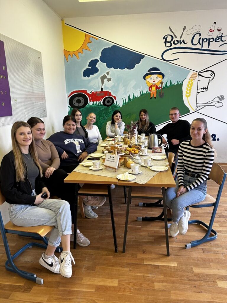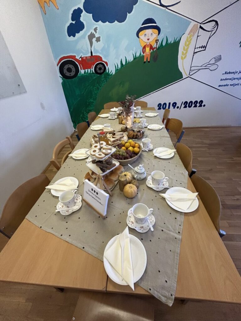 Učenici su s nastavnicom poslužili i uživali u različitim vrstama čajeva, mini sendviča, keksića i voća, pritom učeći o bontonu posluživanja i pravilima ponašanja za stolom.