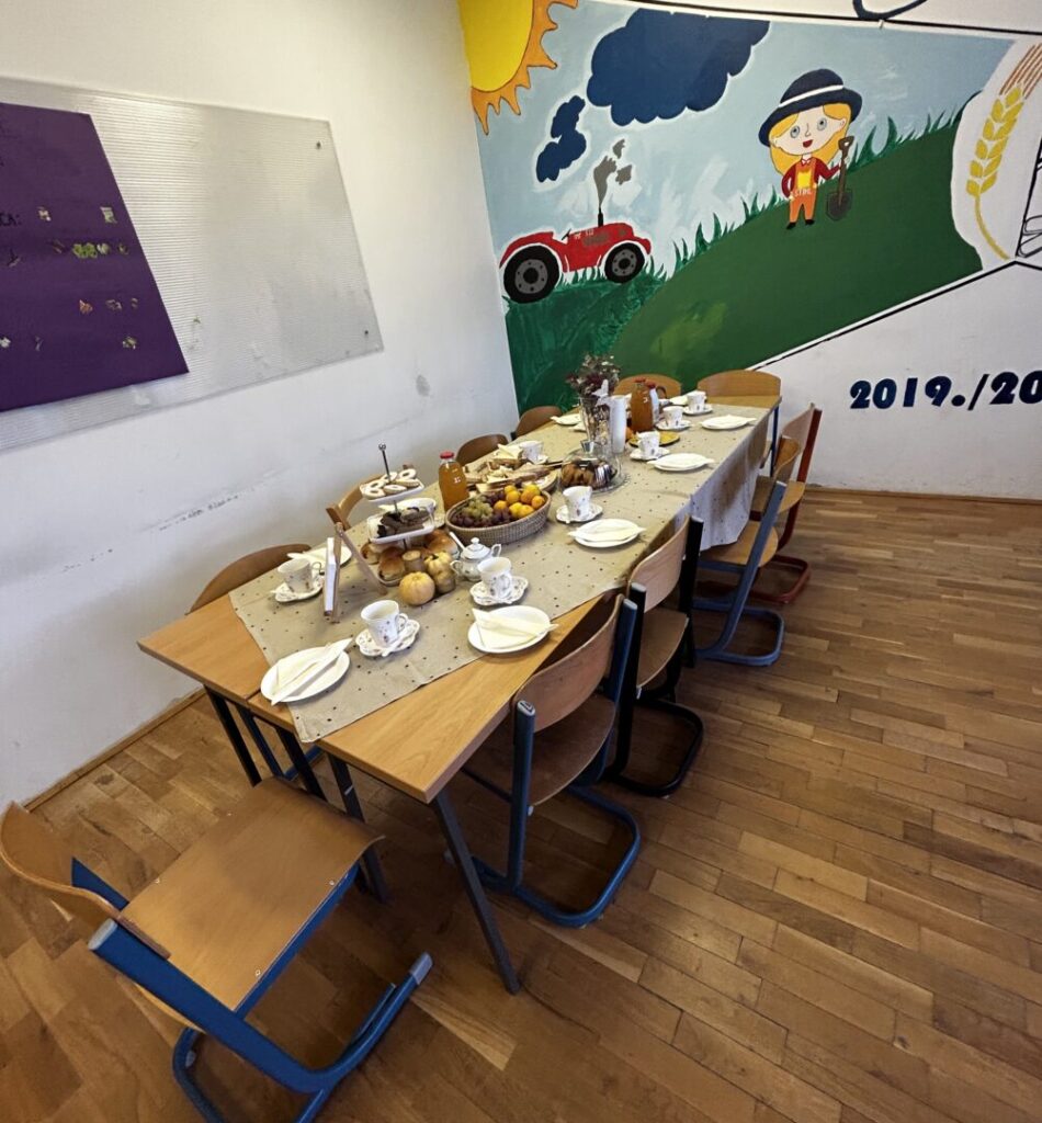 U učionici se osjetila prava jesenska atmosfera – stolovi su bili ukrašeni toplim bojama, mini tikvicama, lišćem i kestenjem, a miris čaja od ispunio je prostor.
