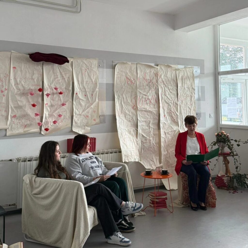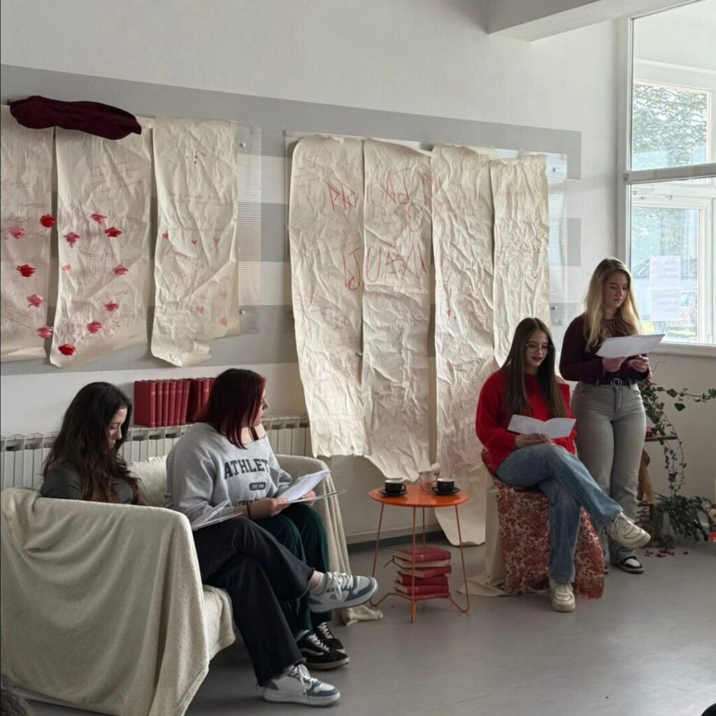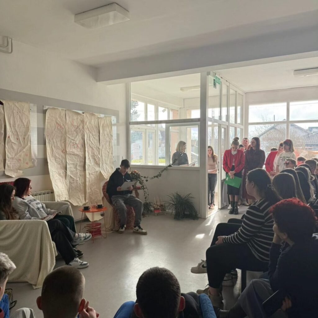 Poezija se čitala u prigodno uređenom školskom holu za koji se pobrinula naša nastavnica Likovne umjetnosti Majana Štor.