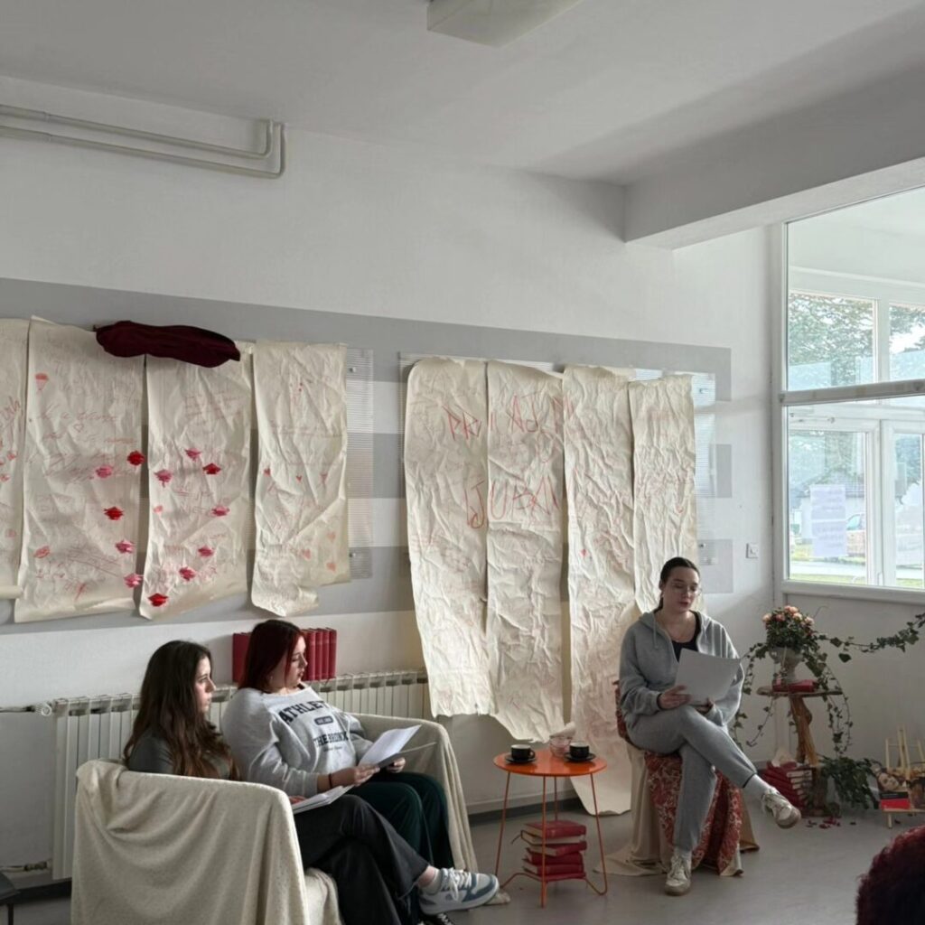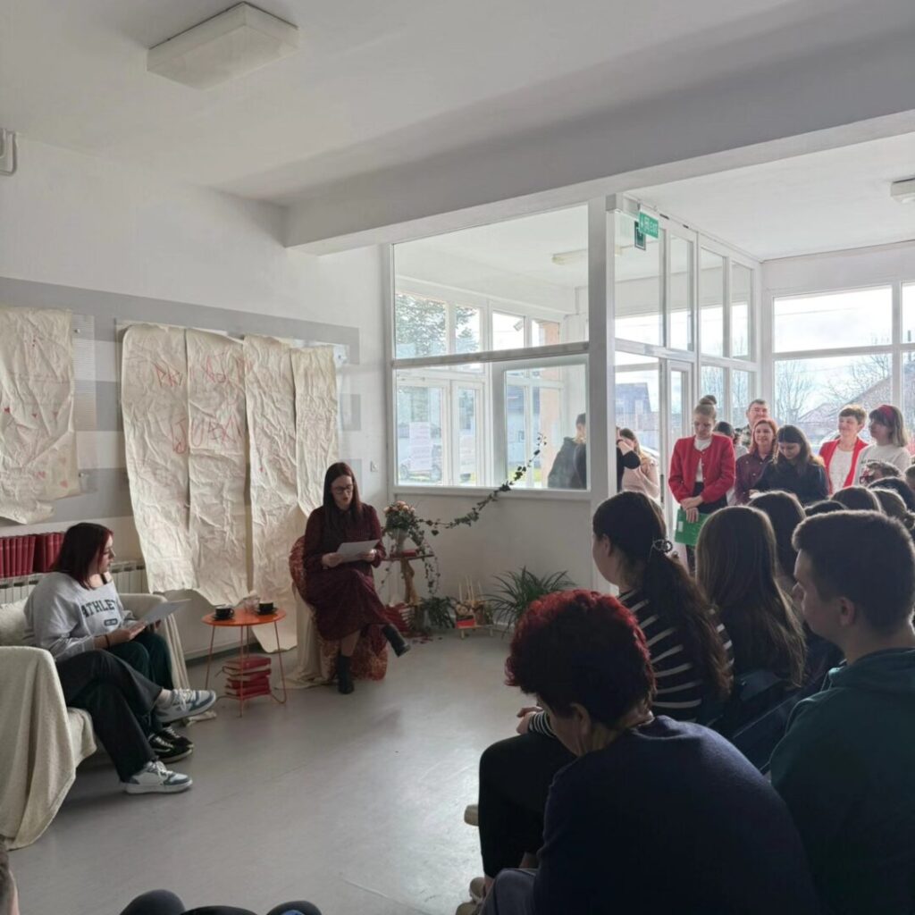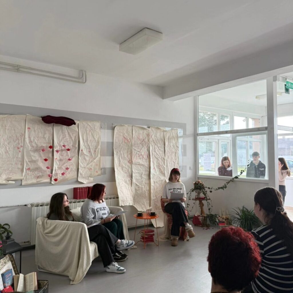Poezija se čitala u prigodno uređenom školskom holu za koji se pobrinula naša nastavnica Likovne umjetnosti Majana Štor.