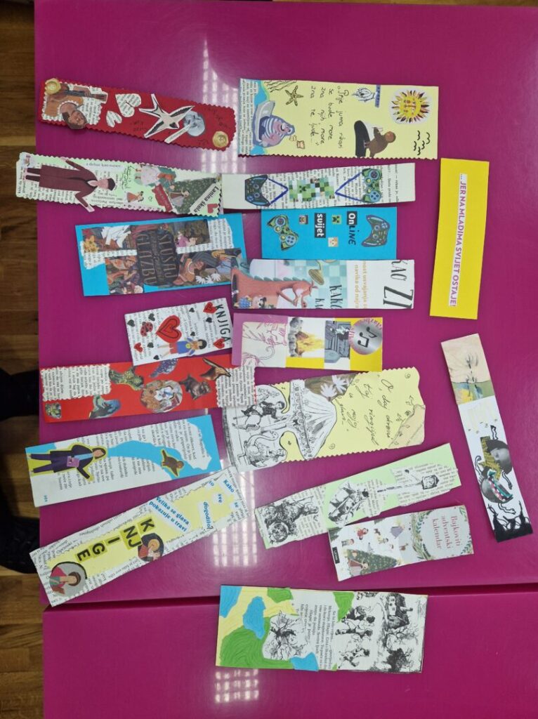 Pod vodstvom školskih knjižničarki Ane Delić Jančar i Franke Frančešević, učenici su izrađivali straničnike od starih knjiga i časopisa potičući tako eko osviještenost, recikliranje i ljubav prema knjizi.