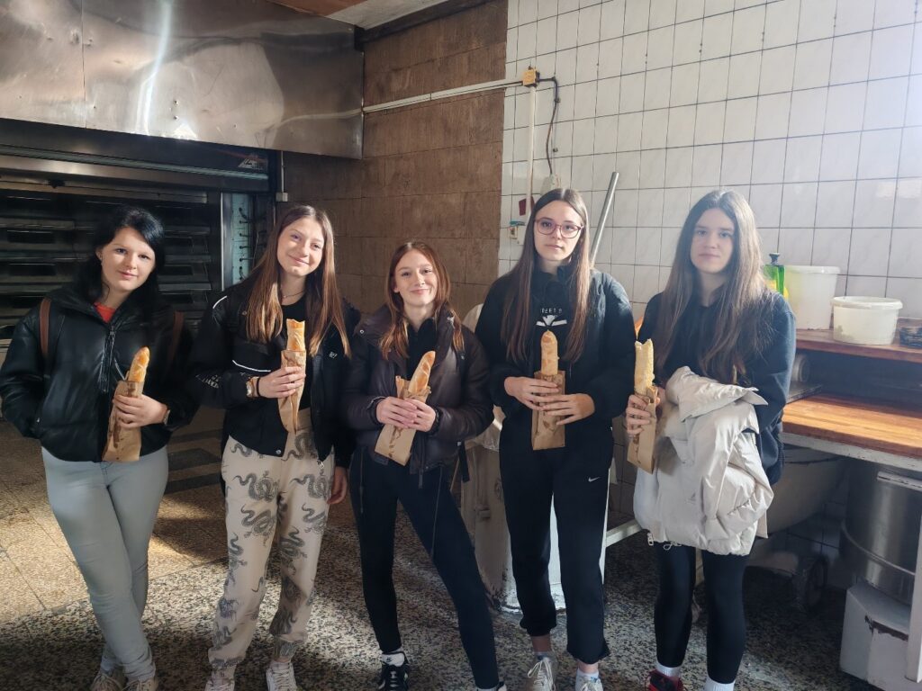 Djelatnice pekare učenicama su objasnili važnost kvalitetnih sirovina, pravilne pripreme tijesta i poštivanja higijenskih standarda u proizvodnji hrane. Učenice su imale priliku vidjeti kako izgleda svakodnevni rad u pekarskoj proizvodnji te su aktivno sudjelovale postavljajući pitanja i povezujući teorijska znanja s praksom.